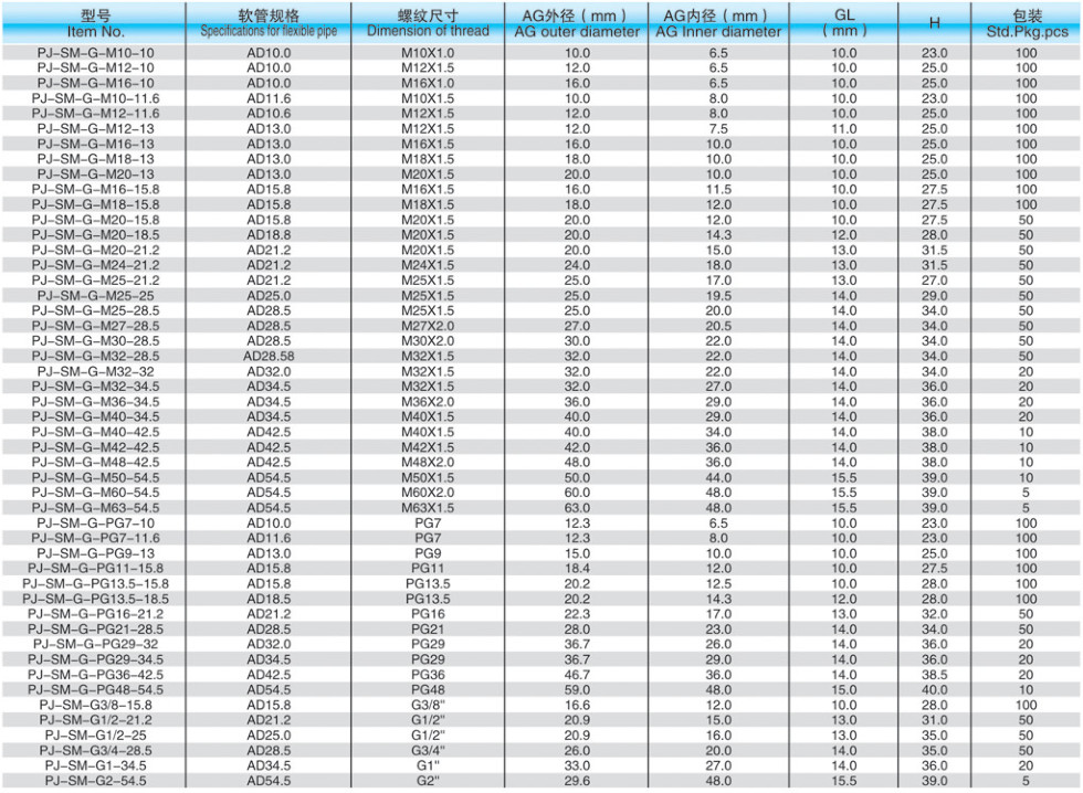 螺牙規(guī)格:公制牙(Metric),PG牙及(PF牙)。