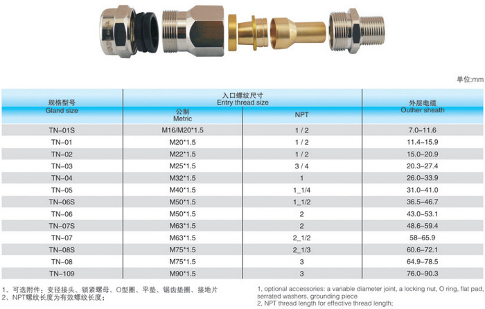 TN系列隔爆型鎧裝電纜引入裝置(電纜填料函、電纜戈蘭)