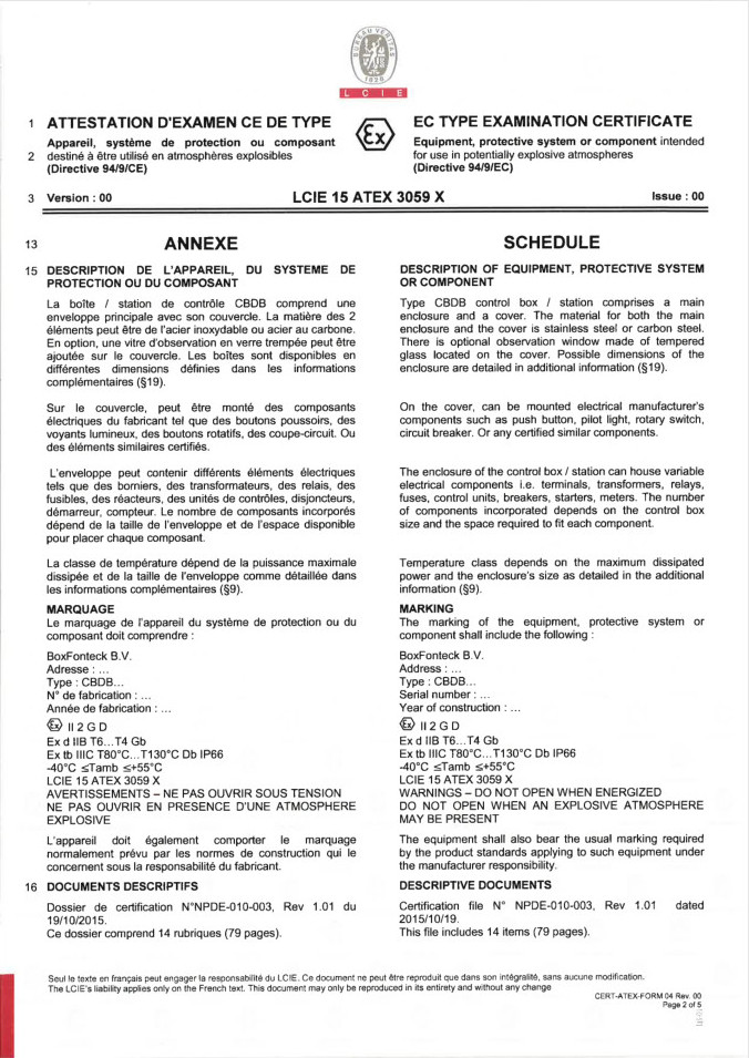 下一篇:CBDB Control Box IECEx LCIE 15 0049 X